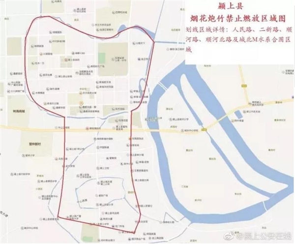 即日起至2018年3月2日,颍上县人民路——顺河路——顺河北路——城北M水系——二新路这几条路合围区域,禁止燃放烟花爆竹!