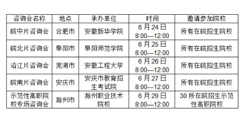 从6月24日开始,省教育招生考试院将继续分片分段主办2018年在皖招生院校系列现场咨询活动。