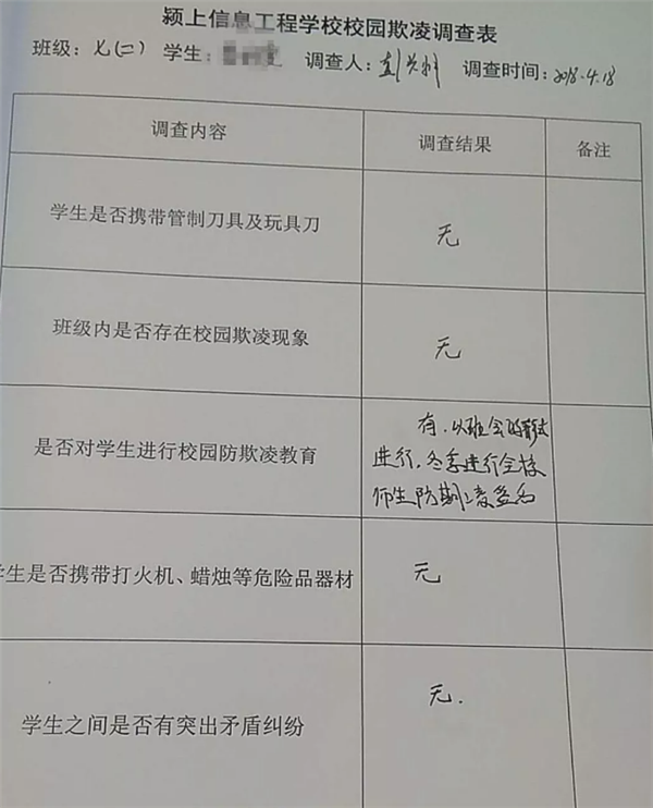 为有效预防校园欺凌事件,维护和确保学校的稳定和发展,保障教育教学工作的正常运行,根据县教育局知要求,我校结合实际于2018年4月18日上午开展了校园欺凌调查活动。